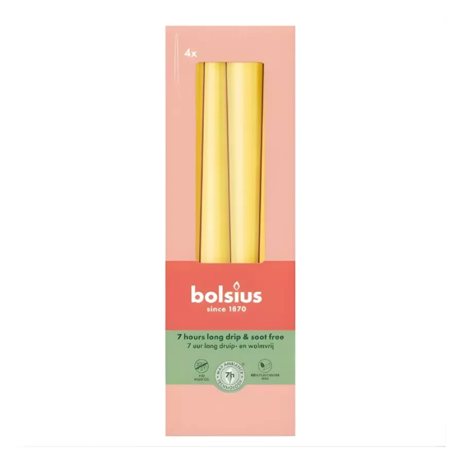 Šīs dzeltenās galda sveces no zīmola Bolsius ir ideālas gan mājas apdarei, gan svinībām. Tās nodrošina patīkamu gaisotni, un to degšanas laiks ir līdz 7 stundām, kas ļauj ilgi un ērti izbaudīt to gaismu.