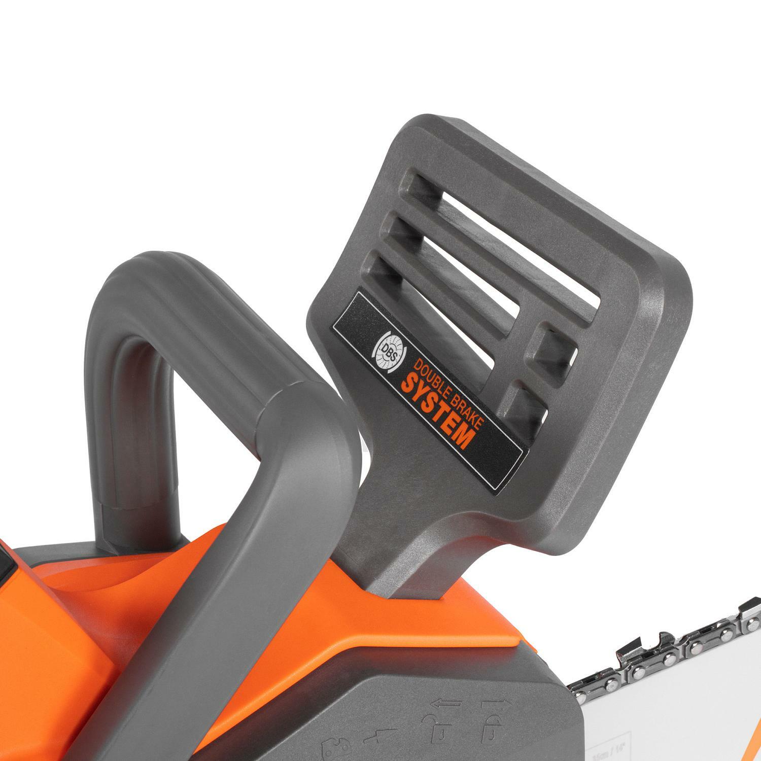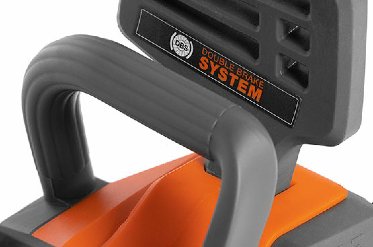 Lentes bremzes mehānisms novērš ķēdes kustību spēcīga atsitiena gadījumā, samazinot operatora traumu risku. Ergonomisks gumijas rokturis