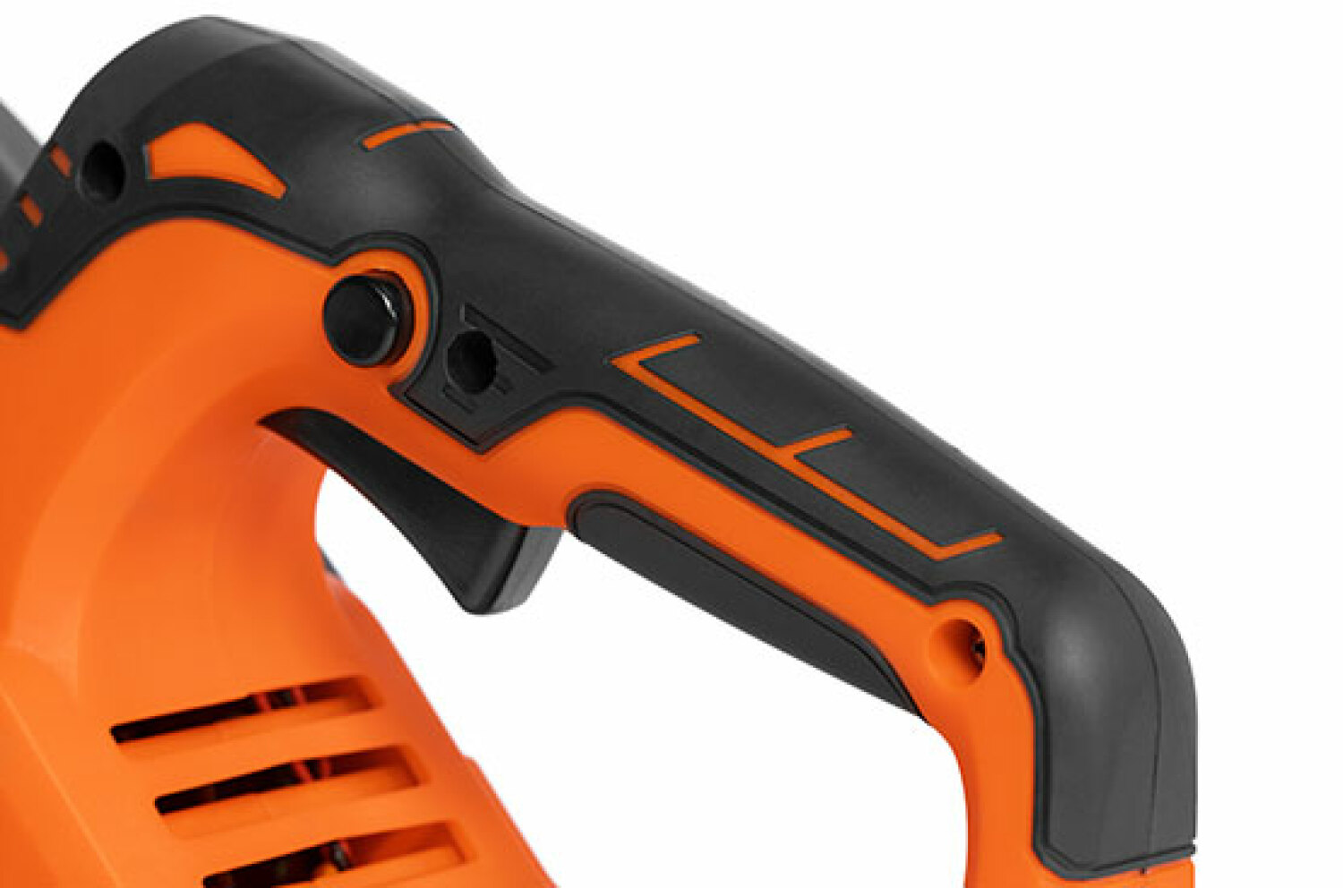 Nodrošina drošu satvērienu un ērtu lietošanu. Mīkstais pārklājums slāpē vibrāciju, samazinot roku nogurumu ilgstošas lietošanas laikā. Paceltā neslīdošā virsma novērš zāģa nejaušu slīdēšanu.