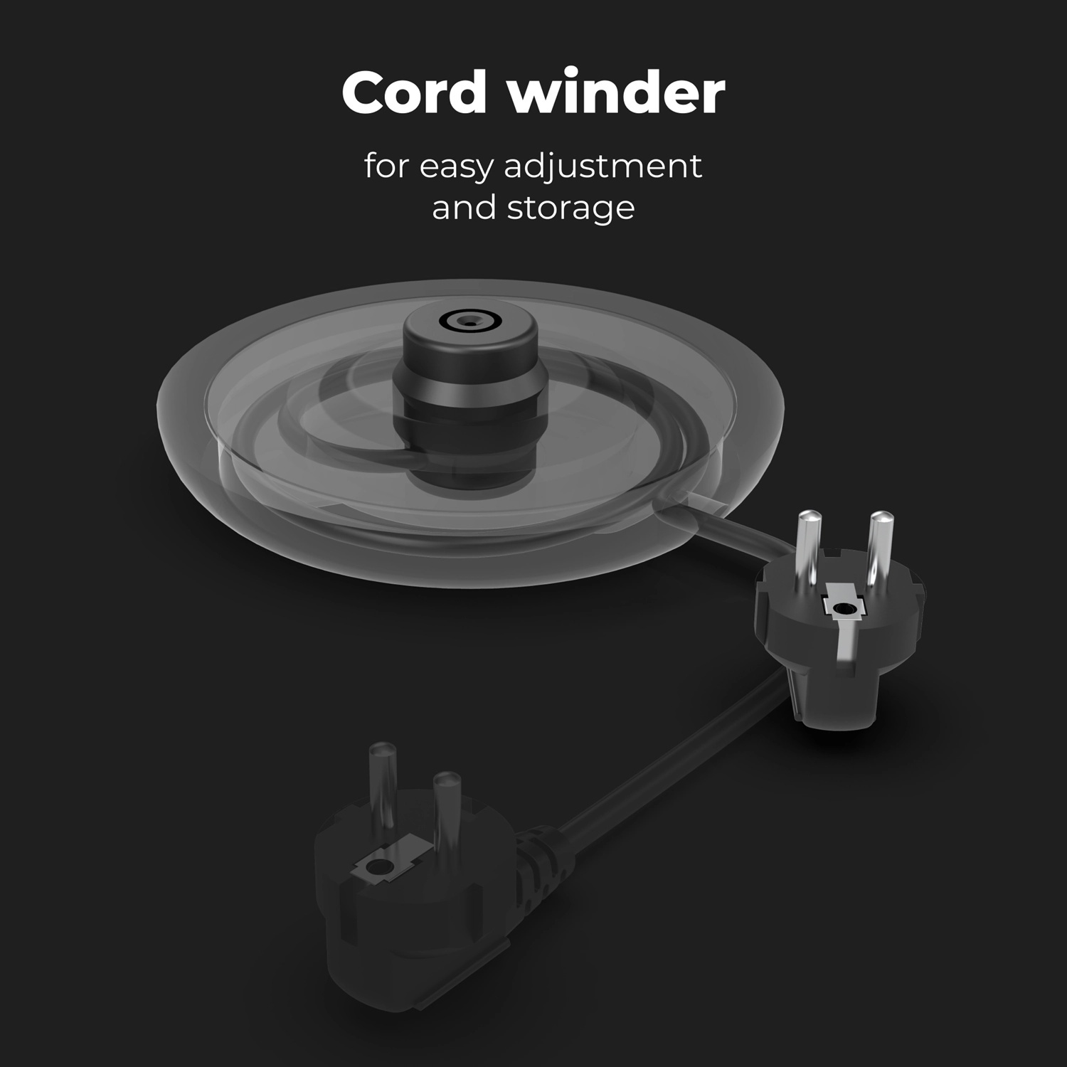 Ērta lietošana — redzama ūdens līmeņa atzīme, soft-touch vāks, 360° rotējošā bāze.