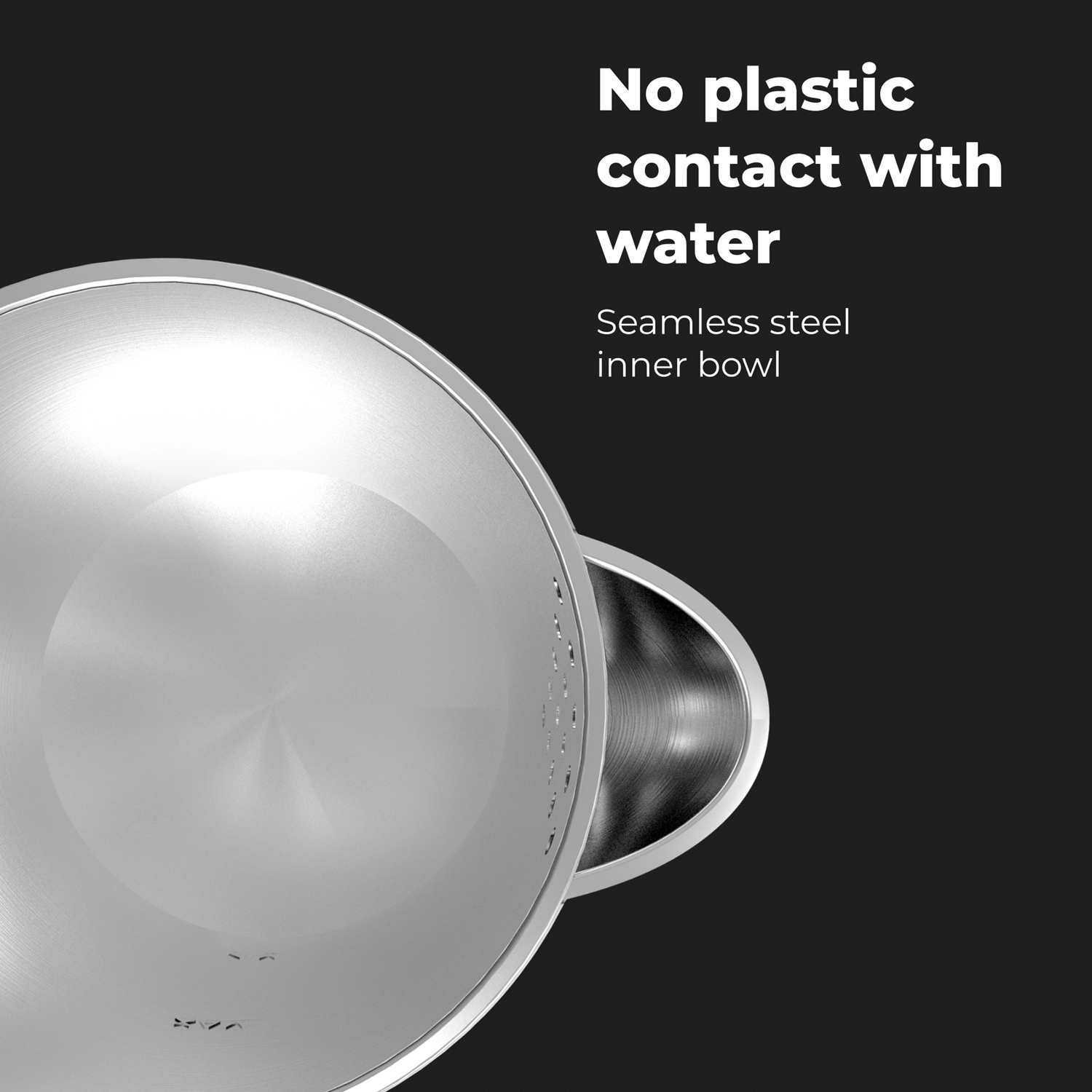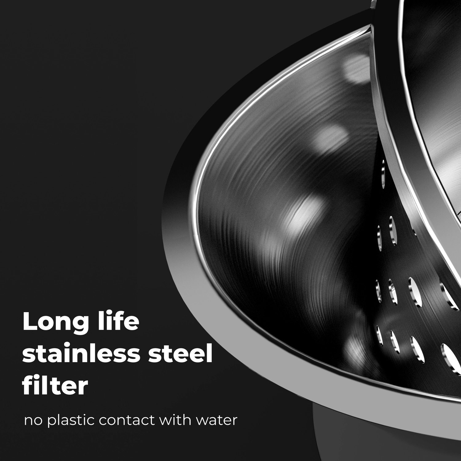 Pilnīga ūdens tīrība — nerūsējošais tērauds bez plastmasas saskares.