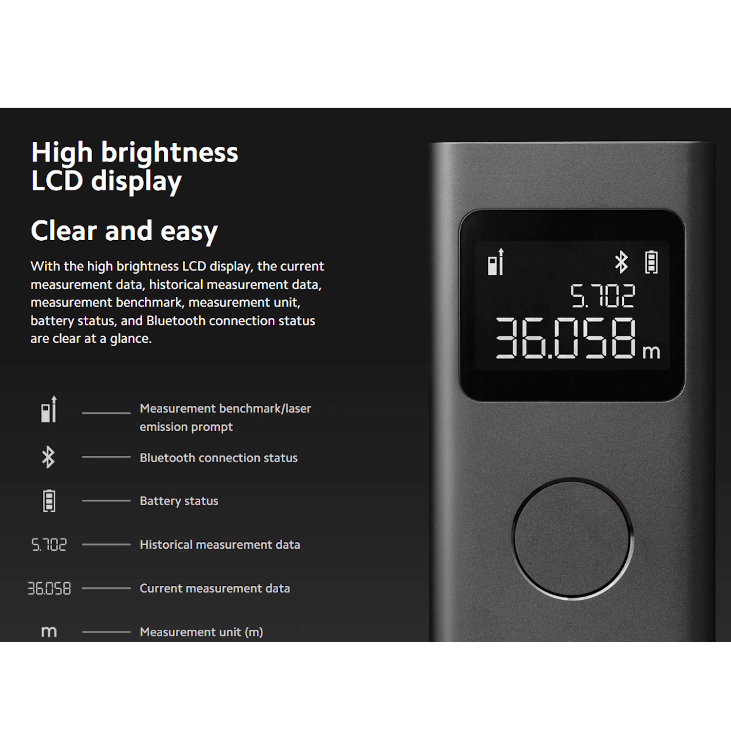 Xiaomi Smart Laser Measure ir precīzs digitālais lāzera attāluma mērītājs ar Bluetooth savienojumu, kas ļauj lietot mobilo lietotni, lai saglabātu, pārvaldītu un analizētu mērīšanas datus. Ar ±3 mm precizitāti un līdz 40 m mērīšanas diapazonu tas ir piemērots gan mājas remontam, gan profesionāliem būvdarbiem.