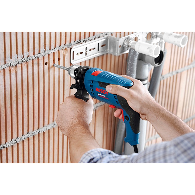 GSB 13 RE Professional ir kompakta sākuma līmeņa triecienurbjmašīna ar vienu pārnesumu un elektrokabeli. Vieglā konstrukcija (1,8 kg) un nelielais korpusa izmērs ļauj to ērti vadīt un manevrēt. Tā ir arī sevišķi izturīga, ieskaitot izturīgo metāla bezatslēgas urbjpatronu. Turklāt, šī triecienurbjmašīna nodrošina profesionālus rezultātus par optimālu cenu.