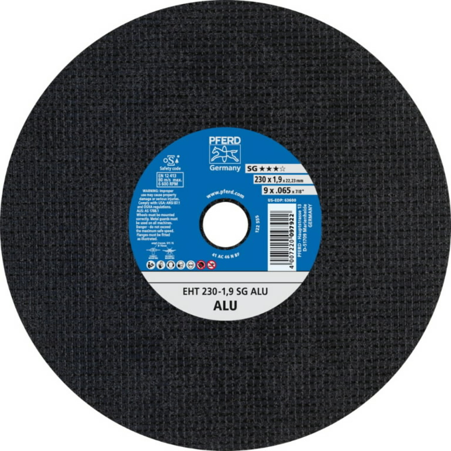 Griezējdisks SG Alu 230x1,9mm no zīmola PFERD ir ideāli piemērots alumīnija un citu krāsaino metālu griešanai, nodrošinot augstu griešanas veiktspēju un ilgu kalpošanas laiku.