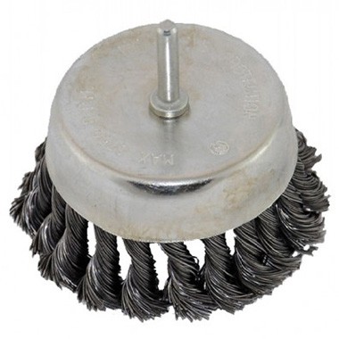 Koniskā birste uz ass 80mm, pīti tērauda sari 3521 FASTER TOOLS