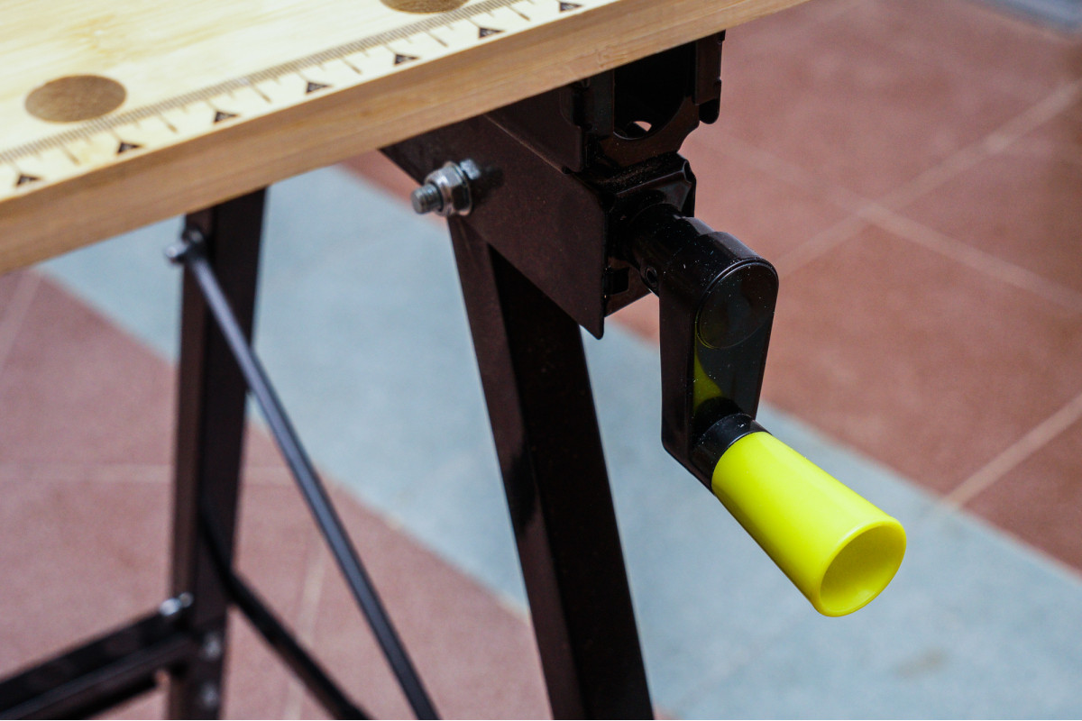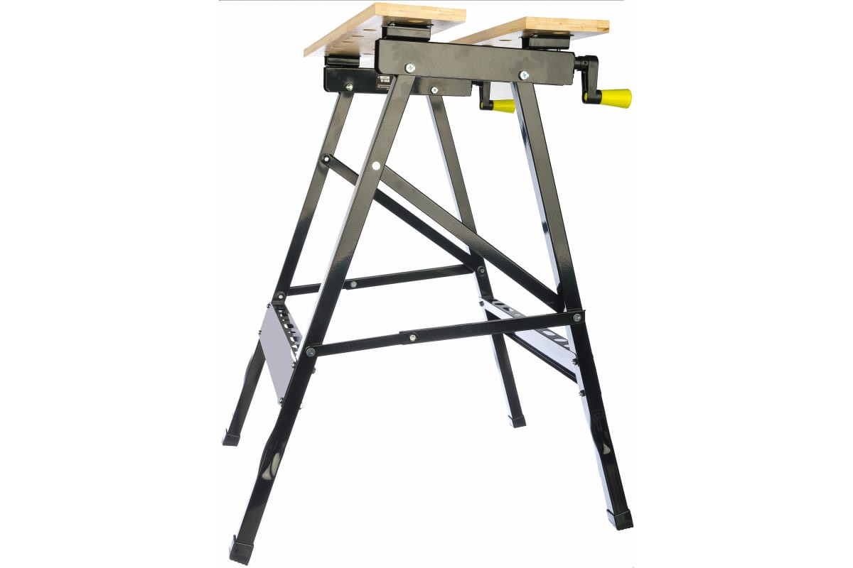 Darbgalds ar izturīgu bambusa pārklājumu. Izturīga tērauda konstrukcija, viegli salokāms ērtai uzglabāšanai un transportēšanai. Divas spīles stingrai materiāla iespīlēšanai. Maināma spīļu elementu pozīcija vieglai un drošai materiāla iespīlēšanai. Neslīdošas kāju gumijas uzlikas. Maks. nestspēja ― 100 kg. Svars ― 6 kg.