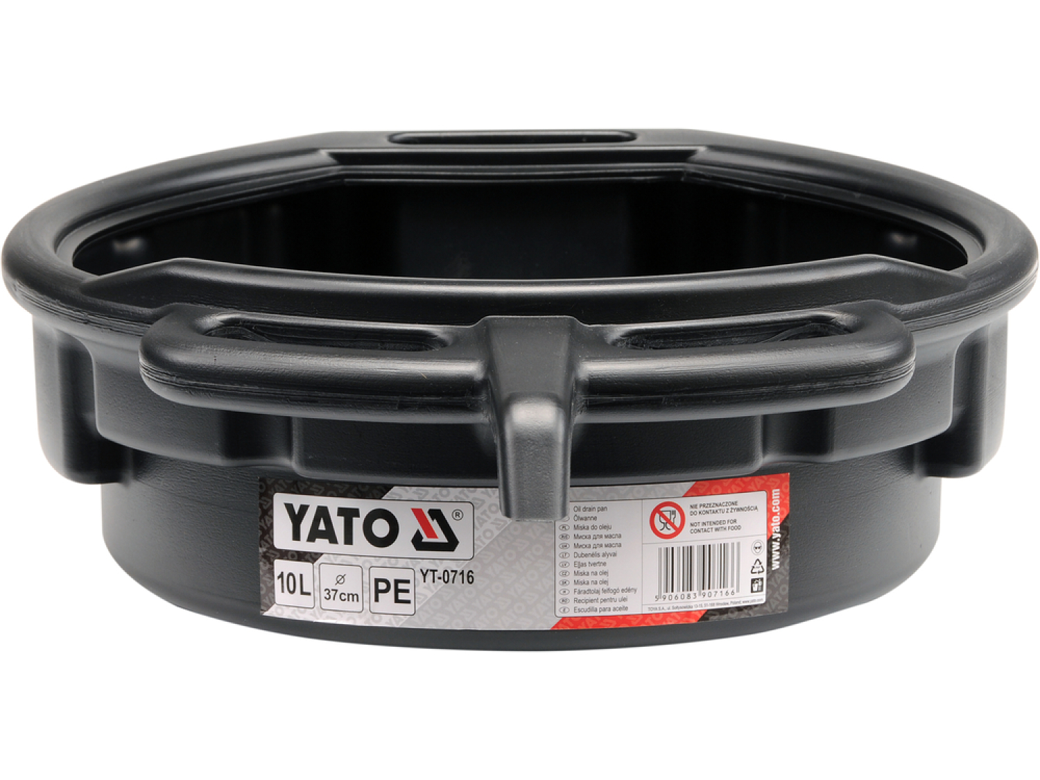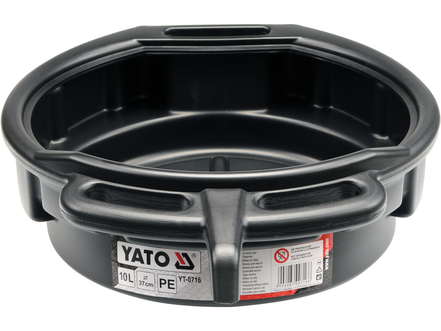 Trauks eļļai apaļš D37mm 10L YT-0716 YATO ir ideāli piemērots, lai ērti iztukšotu izmantoto eļļu vai citus darba šķīdumus. Šis trauks ir izgatavots no polipropilēna un ir aprīkots ar ērtiem rokturiem un kontūrveida iztukšošanas šķērsgriezumu. Tā ietilpība ir 10 litri.
