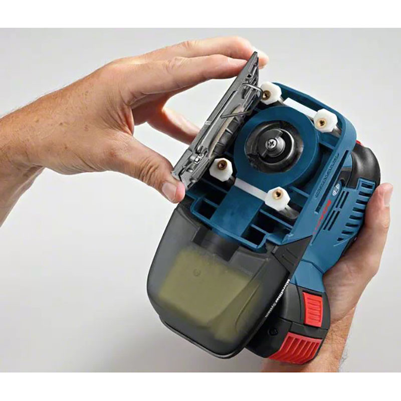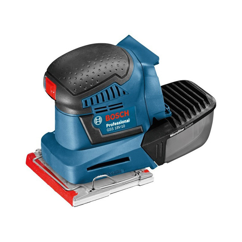 GSS 18V-10 Professional ietver arī putekļu kasti ar iebūvētu Bosch mikrofiltru sistēmu, maināmus paliktņus, turklāt ir izstrādāta tā, lai ar to varētu rīkoties ar vienu roku.