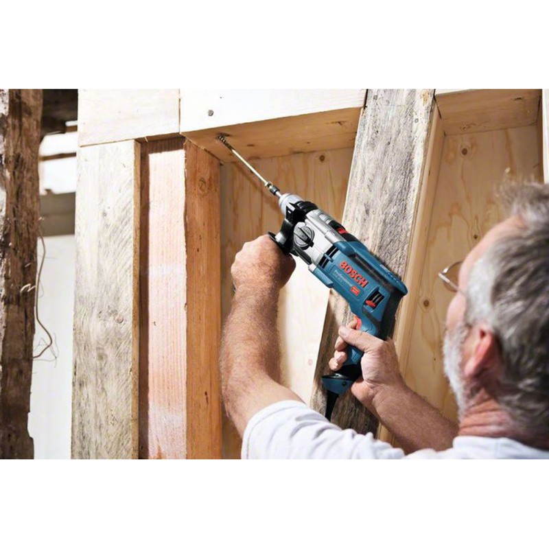Universāla, no elektrotīkla darbināma 2 pārnesumu triecienurbjmašīna ar pretatsitiena kontroles funkciju KickBack Control Instruments GSB 20-2 Professional ir universāla, no elektrotīkla darbināma 2 pārnesumu triecienurbjmašīna ar pretatsitiena kontroles funkciju KickBack Control. Tās jaudīgais 850 W motors nodrošina ātru darbu izpildi. Inteliģentā pretatsitiena kontroles funkcija KickBack Control paaugstina lietotāja aizsardzības līmeni. Turklāt, triecienurbjmašīna ir apgādāta ar izturīgu metāla pārnesuma korpusu, kas instrumentam nodrošina lielu kalpošanas laiku. Šis instruments ir paredzēts mūra, akmens, koka un metāla urbšanai. Tas ir saderīgs ar putekļu uzsūkšanas papildierīci GDE 16 Cyl Professional. Bez tam instrumentam GSB 20-2 Professional ir automātiskās fiksēšanas funkcija Autolock, rotācijas vadības sajūgs un griešanās ātruma pārslēgšana. Spēcīgs 850 W dzinējs nodrošina augstu darba ražību Aizsardzība pret atsitienu KickBack Control uzlabo lietotāju drošību Izturīgs metāla pārnesumkārbas korpuss nodrošina ilgu darbarīka kalpošanas laiku Tai ir arī automātiskās fiksēšanas funkcija Autolock, rotācijas vadības sajūgs un griešanās ātruma pārslēgšana
