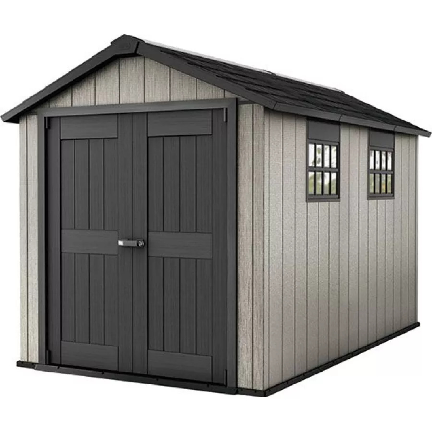 Ērti un plaši Oakland 7511 dārza šķūnis ir ideāls risinājums tiem, kas meklē modernus, funkcionālus un stilīgus glabāšanas risinājumus. Plašais iekšējais telpas dizains ļauj ērti izvietot plauktus un skapjus, kā arī nodrošina vietu lieliem dārza instrumentiem un piederumiem. Šķūnīša dubultās sienas ir izgatavotas no unikālas sveķu kompozīcijas, kas ir izturīga pret nelabvēlīgiem laika apstākļiem, savukārt cietais jumts un pastiprināta tērauda konstrukcija nodrošina ilgu kalpošanas laiku. Turklāt šķūnītis ir viegli krāsojams, pateicoties tā īpašajai sienu tekstūrai.