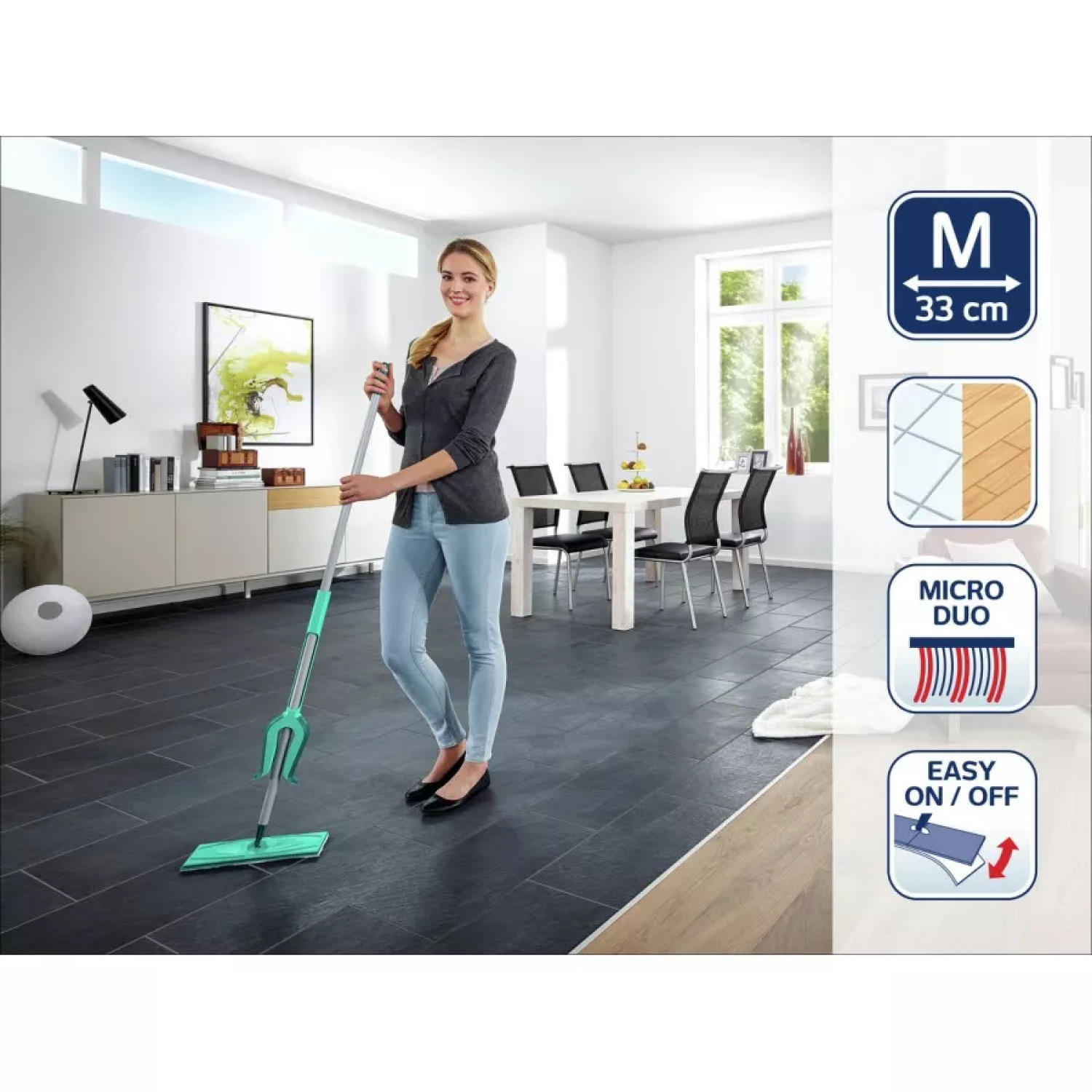 Grīdas birste Picobello M micro duo (33 cm) no zīmola LEIFHEIT ir ideāli piemērota visu veidu grīdas segumiem. Šī birste ir aprīkota ar efektīvu lupatiņas nospiešanas mehānismu un tās tīrāmā virsma var griezties 360° leņķī, nodrošinot maksimālu kustību brīvību un komfortu tīrīšanas laikā. Grīdas lupata ir mazgājama līdz 40°C temperatūrā, kas nodrošina vieglu kopšanu un ilgmūžību.