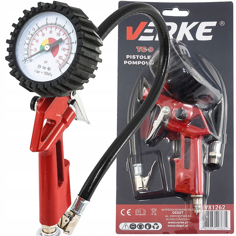 Riepu pumpējamā pistole ar manometru 12bar VERKE