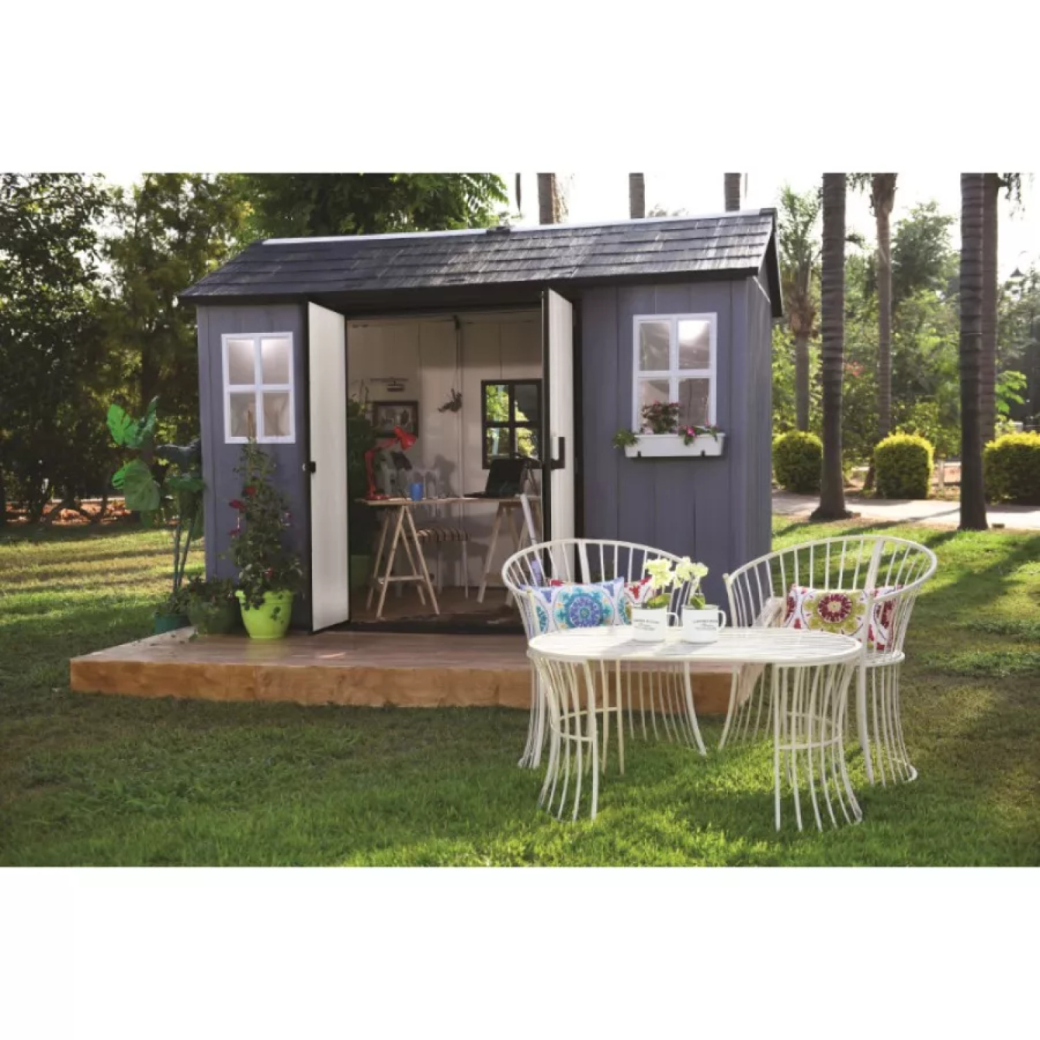 Šis šķūnis ir ideāls smagāku priekšmetu, piemēram, zāles pļāvēju, uzglabāšanai, pateicoties tā izturīgajai grīdai.
