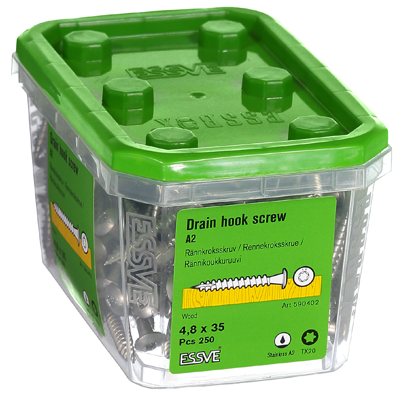 ESSVE noteku āķu skrūves paredzētas noteku āķu montāžai pie koka karkasa.