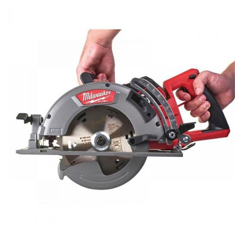 Ripzāģis ar aizmugures roktura dizainu un pa kreisi izvietotu asmeni nodrošina lietotājam izcilu griezuma līnijas pārredzamību