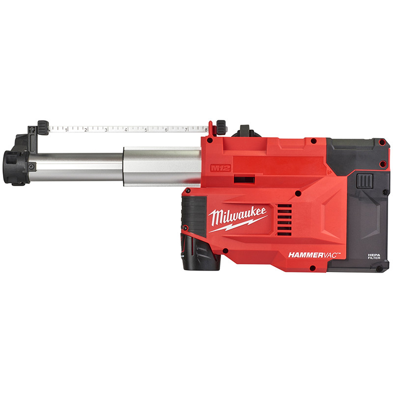 2 dažādi putekļu novadīšanas režīmi, kas ļauj ierīci darbināt pastāvīgi vai automātiski aktivizēt brīdī, kad tiek uzsākta urbšana
