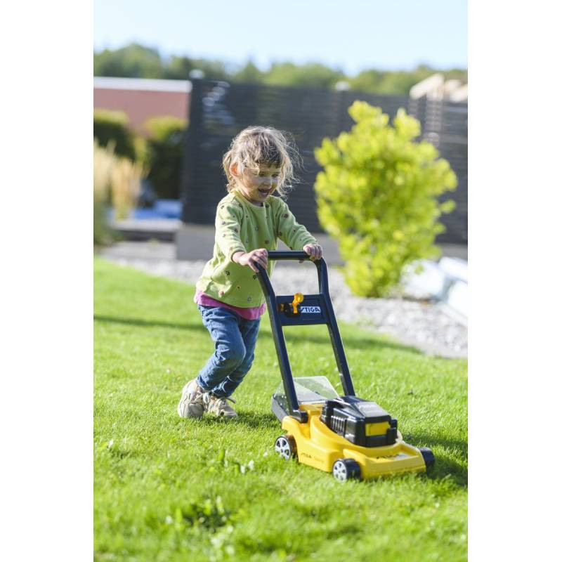 Maziem bērniem ir raksturīgi atdarināt to, ko un kā ikdienā dara viņu vecāki - rūpējas par bērniem, brauc ar auto, gatavo ēst, mazgā veļu, grābj lapas un - jā, arī pļauj zāli. Un tas ir tikai dabiski. Piemēram, STIGA pat ir radījusi veselu rotaļu dārza tehnikas komplektu, kurā ir pat traktors ar piekapi! Šis ir viens no - rotaļu zāļu pļāvējs 2G1100000/ST1. Tas ir izgatavots no plastmasas, kas garantē bērniem pilnīgu drošību, sver nieka 2,2 kg, pusmetru garumā un augstumā. Kustība uz priekšu un atpakaļ rada zāles savākšanas simulāciju aizmugurējā maisā (tas ir iekļauts komplektā), rokturis ir nolokāms. Paredzēts bērniem vecumā no 2,5 līdz pieciem gadiem.