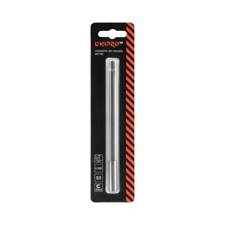 Magnētiskais turētājs Dnipro-M BH-150 ir aprīkots ar pastiprinātu magnētu, kas ļauj turēt uzgaļus, urbjus un dažādus stiprinājumus.