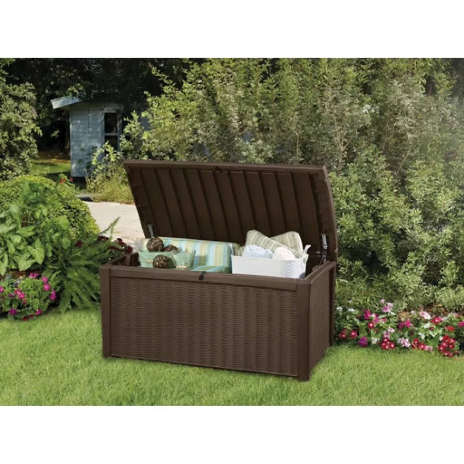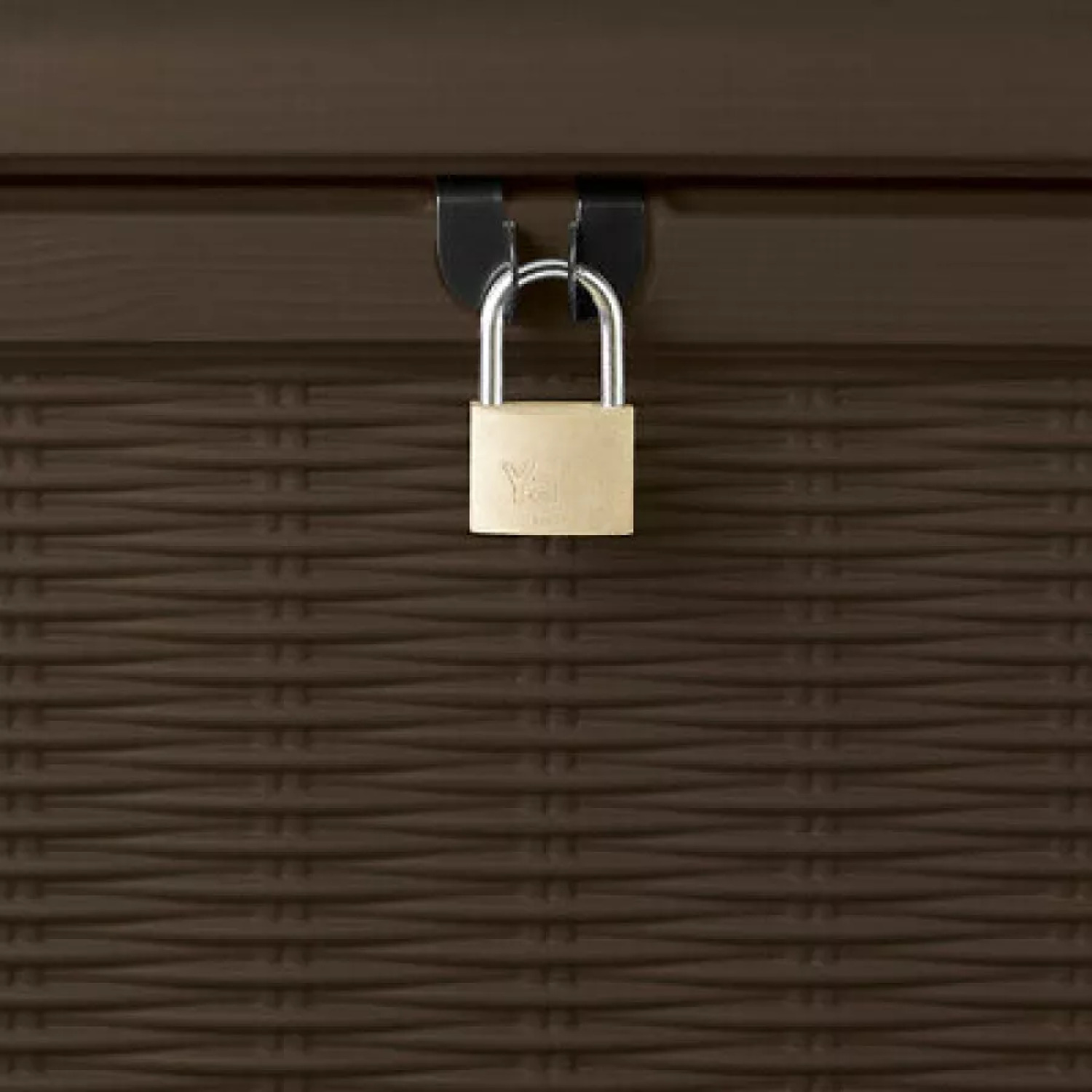 Šī uzglabāšanas kaste ir veidota tā, lai tās saturs būtu sauss un vēdināts jebkuros laika apstākļos. Kaste ir ideāli piemērota terases un grila piederumu glabāšanai, kā arī dārza spilvenu un instrumentu uzglabāšanai. To var izmantot arī kā solu, lai komfortabli sēdētu divi pieaugušie. Jums patiks elegants klūgu / rotangpalmas dizains un automātiskais mehānisms ērtai atvēršanai. Pateicoties mūsdienīgajiem materiāliem, to ir viegli kopt.