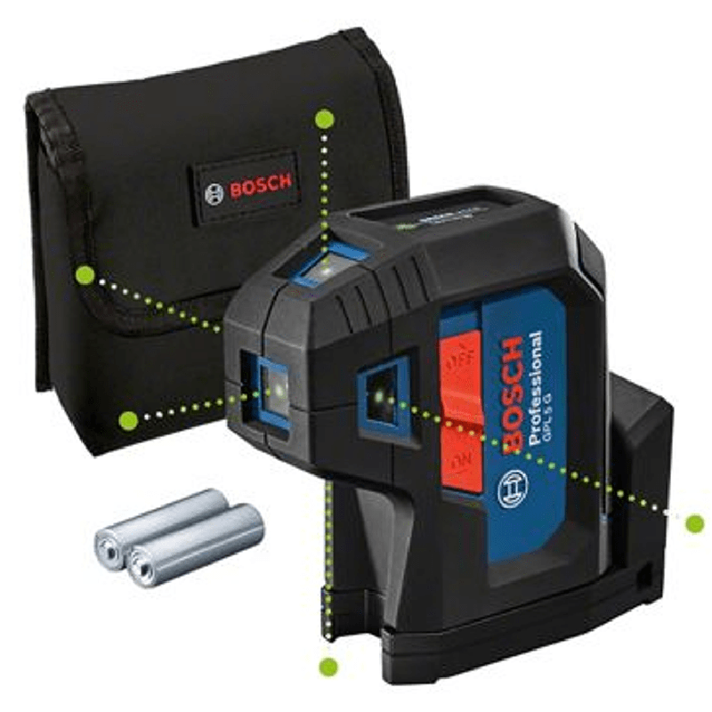 Piecu punktu lāzers GPL 5 G Professional izceļas ar savu izturīgo un kompakto konstrukciju, padarot to par ideālo izvēli, nospraužot 90 grādu leņķa sienas. Tā zaļie lāzera punkti nodrošina līdz pat četrām reizēm labāku redzamību nekā sarkanie lāzera punkti. GPL 5 G Professional ar savu gumijoto korpusu un padziļināto stiklu, kā arī ar IP65 klases aizsardzību pret putekļiem un šļakatām paredzēts darbam smagos apstākļos būvvietā. Šis piecu punktu lāzers ir zibenīgi gatavs transportēšanai, pateicoties iebūvētam rotējošajam stiprinājumam ar spēcīgiem magnētiem ātrai un drošai instrumenta montāžai.