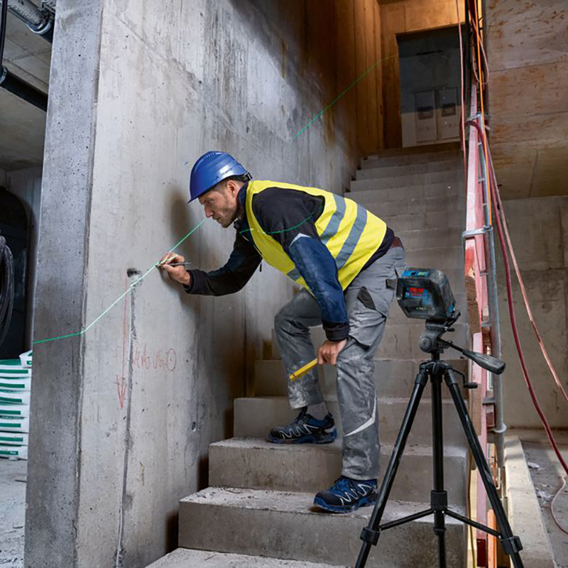 Ātra un droša uzstādīšana, pateicoties RM 10 Professional rotējošajam turētājam ar ļoti spēcīgiem magnētiem. RM 10 Professional ļauj precīzi novietot lāzera līnijas ap svērteņa punktiem. Robustais GCL 2-50 G Professional ir ideāli piemērots dažādiem darbiem, piemēram, ģipškartona karkasa uzstādīšanai, kontaktligzdu un durvju uzstādīšanai un apgaismojuma uzstādīšanas punktu pārnesei.