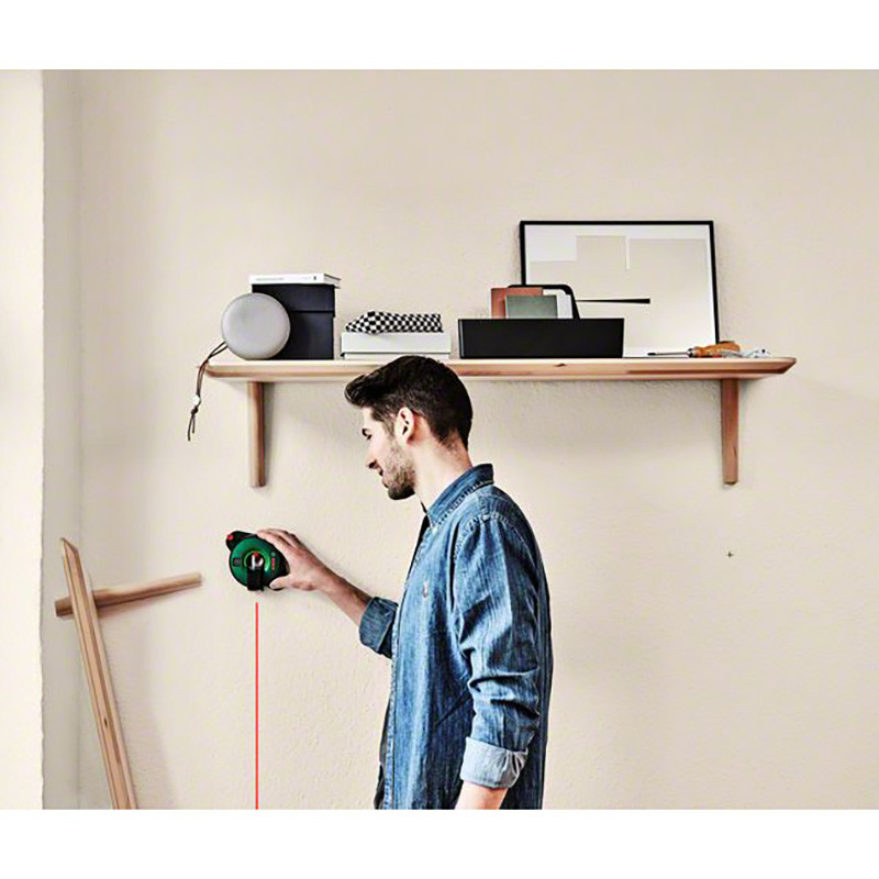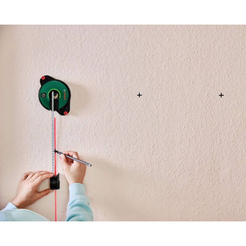 Pakariniet iecienītos vienumus bez palīdzības un tūlīt Viss vienā: līnijas lāzers ar iebūvētu mērlenti vieglai piestiprināšanai, nolīmeņošanai un mērīšanai Paveikt bez citu palīdzības: regulējiet objektus uz sienas viegli un bez palīdzības Ātri un ērti: želejas paliktnis vai tapas ļauj līnijas lāzeru piestiprināt pie dažādām virsmām Nolīmeņojiet un piestipriniet gleznas, plauktus, spoguļus, rokturus vai āķus vai TV Vertikālā vai horizontālā nolīmeņošana visos virzienos (0°, 90°, 180°, 270°); 1,5 m mērlente Palīdzība nav nepieciešama – iecienītos vienumus var nekavējoties nolīmeņot viegli un ērti Bosch Atino atvieglo objektu nolīmeņošanu: līnijas lāzers un iebūvētā mērlente ir ideāls un intuitīvs risinājums, veicot līmeņošanu un mērīšanu. Palīdzība nav nepieciešama! Vienumu pakarināšana bez citu palīdzības ir kļuvusi vieglāka. Atino apvieno visas nepieciešamās līnijas lāzera funkcijas un iekļauj iebūvētu 1,5 m mērlenti. Inovatīvo gela paliktni var piestiprināt pie gludām un raupjām virsmām, piemēram, flīzēm un marmora. Tapu plāksne ar divām nelielām tapām būs ideālais nostiprināšanas risinājums raupjām virsmām vai tapetēm. To var lietot dažādiem darbiem: nolīmeņojot vai iekarot gleznas vai skapjus, nostiprinot āķus, rokturus vai izkārtojot objektus – jums būs nepieciešams tikai Atino. Tas nodrošina vertikālu vai horizontālu līmeņošanu, izmantojot intuitīvu gaismas diožu rādījumu un redzamās lāzera līnijas precizitāti ± 0,3°**.