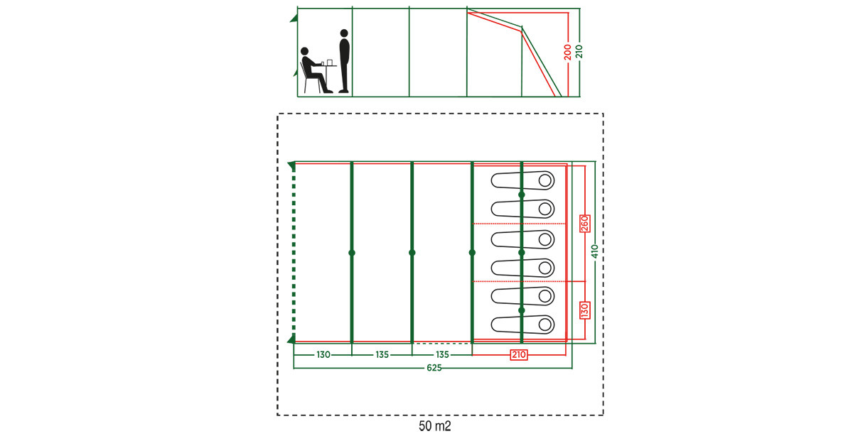 Vail 6L ir plaša ģimenes tuneļa telts, kas piedāvā jums viesistabas un guļamzonu vietas. Vairākas ieejas dod iespēju vieglāk iekļūt un izkļūt no telts. Plašā viesistabas zona ir gaiša un plaša, un tajā ir daudz vietas kopīgai vakariņošanai vai kempinga aprīkojuma un somu glabāšanai, savukārt īpaši lielais lievenis nodrošina lielisku vietu atpūtai, pasargājot jūs no saules un lietus.