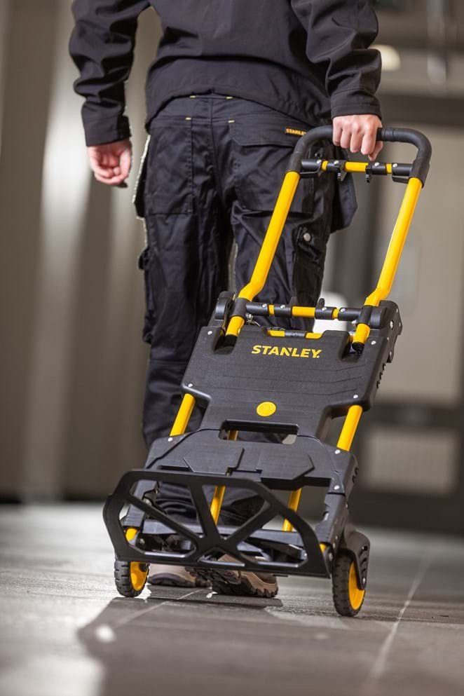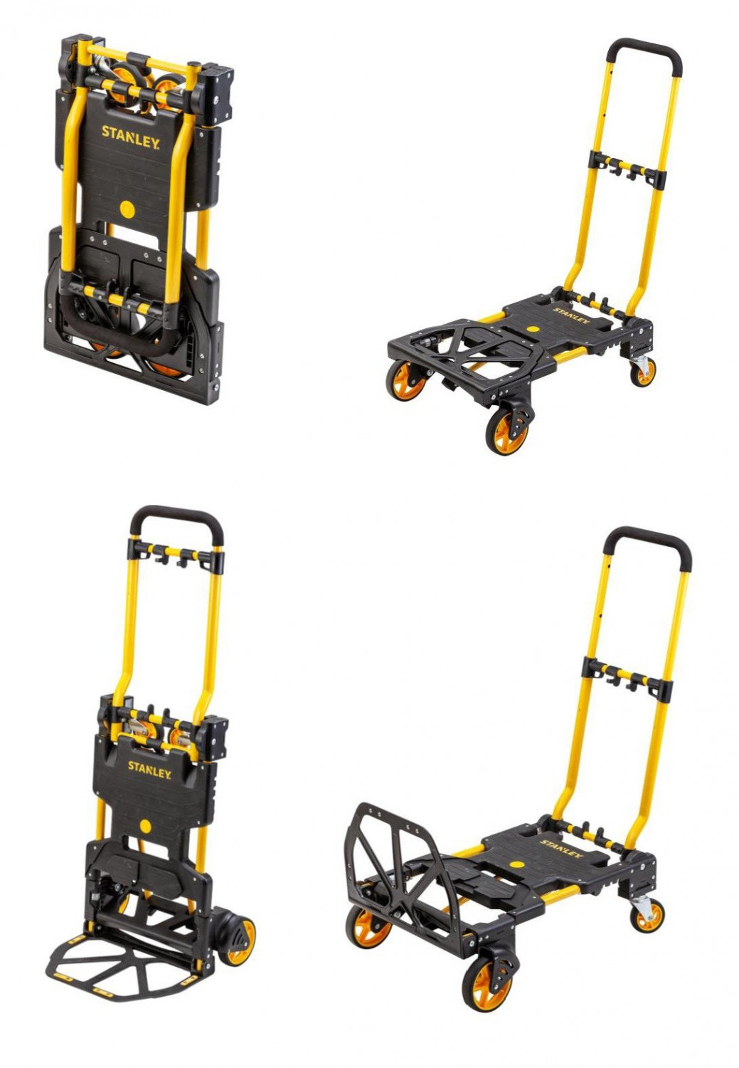 Stanley 2-in-1 saliekamie kravas ratiņi ir saliekami un atverami dažu sekunžu laikā, tos ir viegli lietot un uzglabāt, un tie ir pilnībā samontēti.