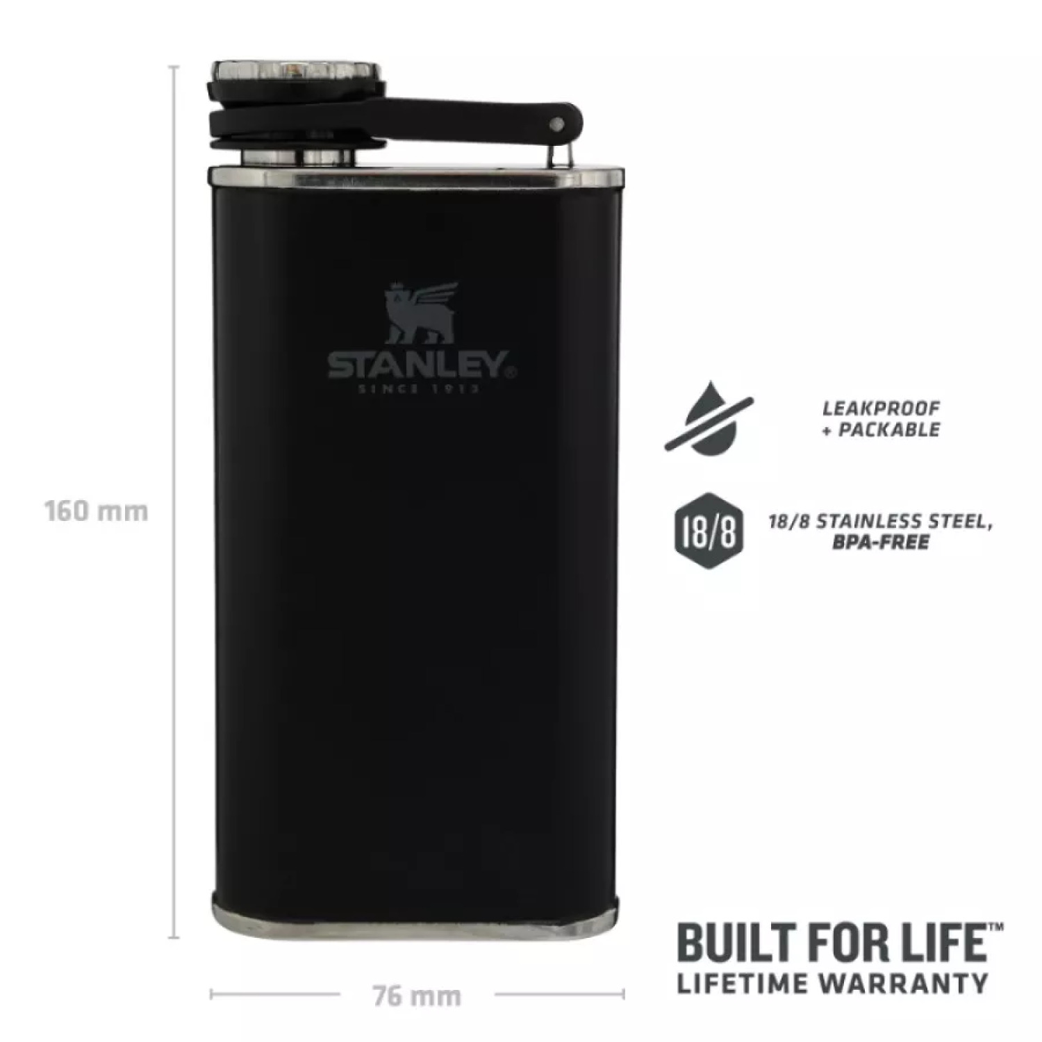 Stanley Classic blašķe ar retro dizainu ir kompakta, taču izturīga. Plašā dzeršanas atvere ļauj to viegli uzpildīt, kamēr nerūsējošā tērauda konstrukcija ar necaurlaidīgu vāciņu nodrošina ilgstošu kvalitāti.