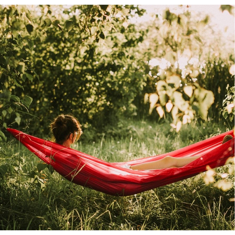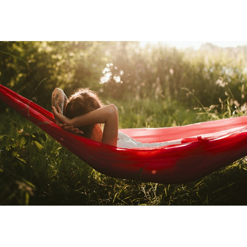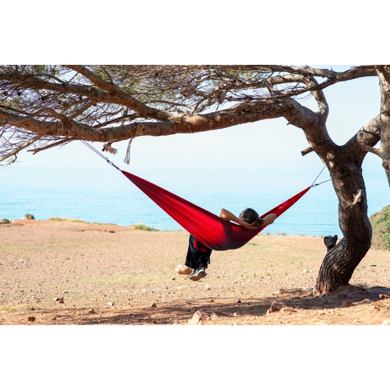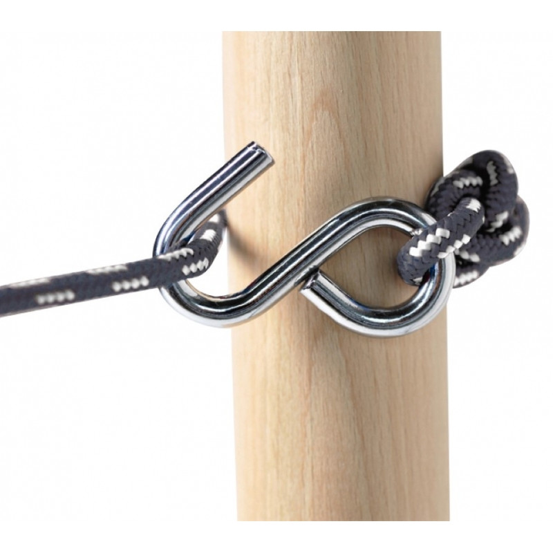 Vienkārši katrā pusē aptiniet virvi vairākas reizes ap koku un piestipriniet ar āķiem. Gatavs! Īpaši stabils, gaisa caurlaidīgs un ādai draudzīgs materiāls.