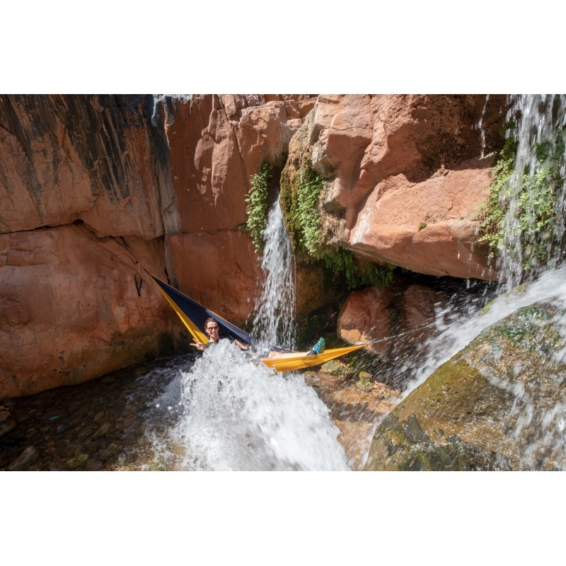Adventure XXL šūpuļtīkls ir izgatavots no stipra, gaisa caurlaidīga, ādai draudzīga Ripstop neilona materiāla.