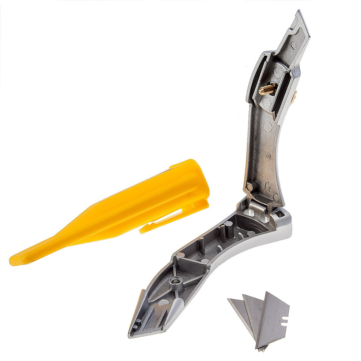 • Komplektā ir izturīgs plastmasas dzeltens apvalks ar jostas stiprinājumu un 3 asmeņiem.