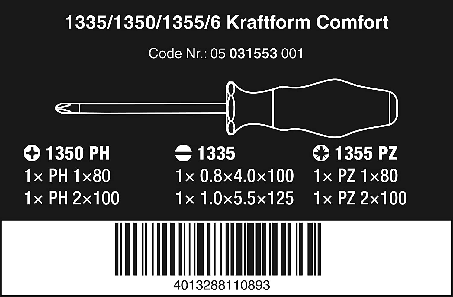 Skrūvgriežu komplekts 1335/1350/1355 (6gab.) 05031553001 WERA