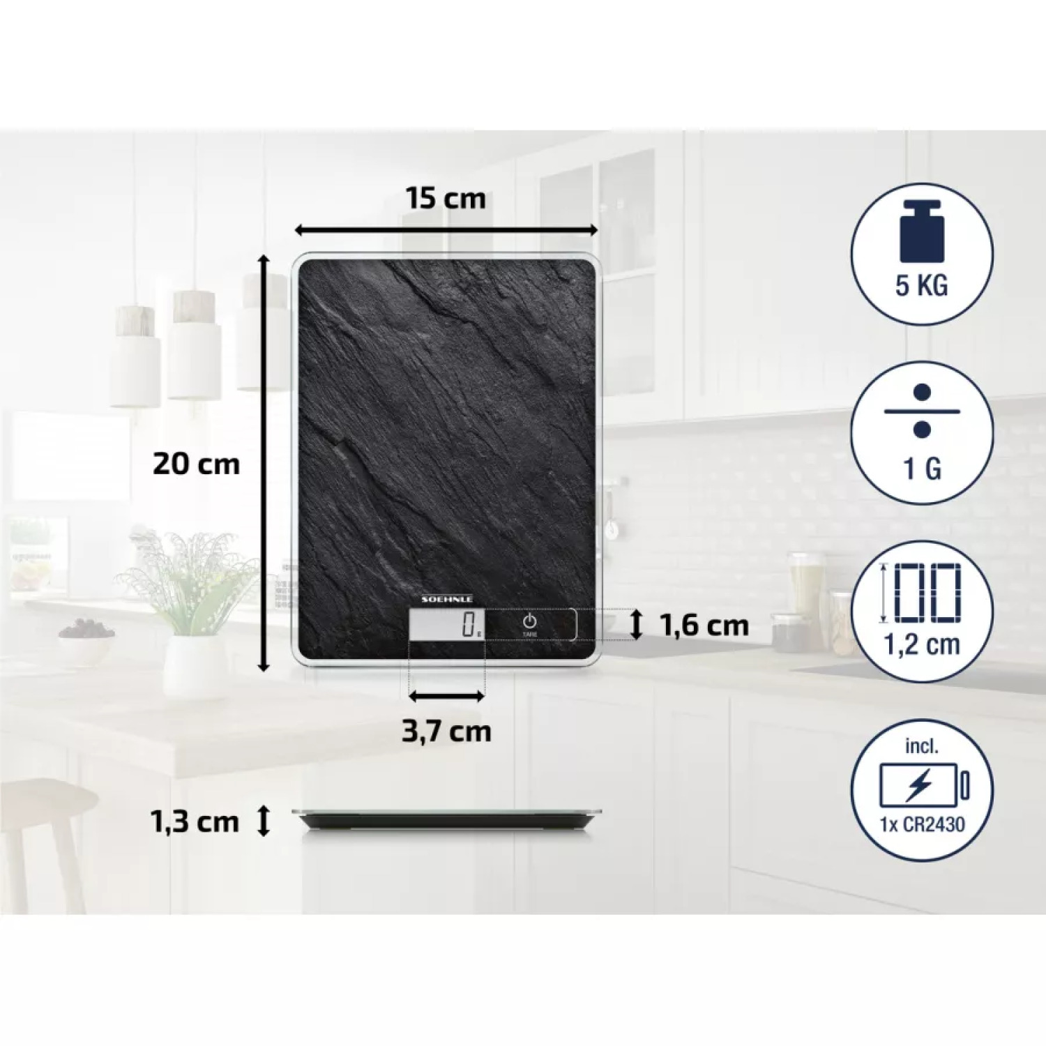 Elektroniskie virtuves svari Page Compact 300 Slate Soehnle 1061515 5kg, 1g precizitāte, 20x15x1.3cm