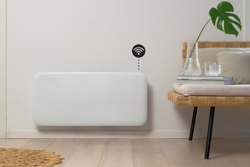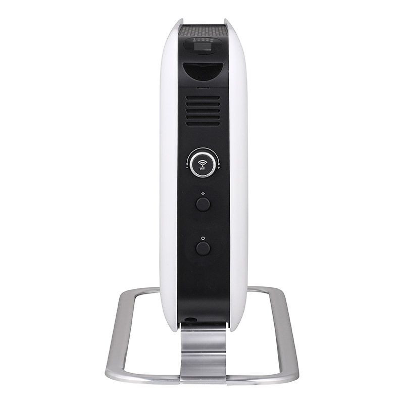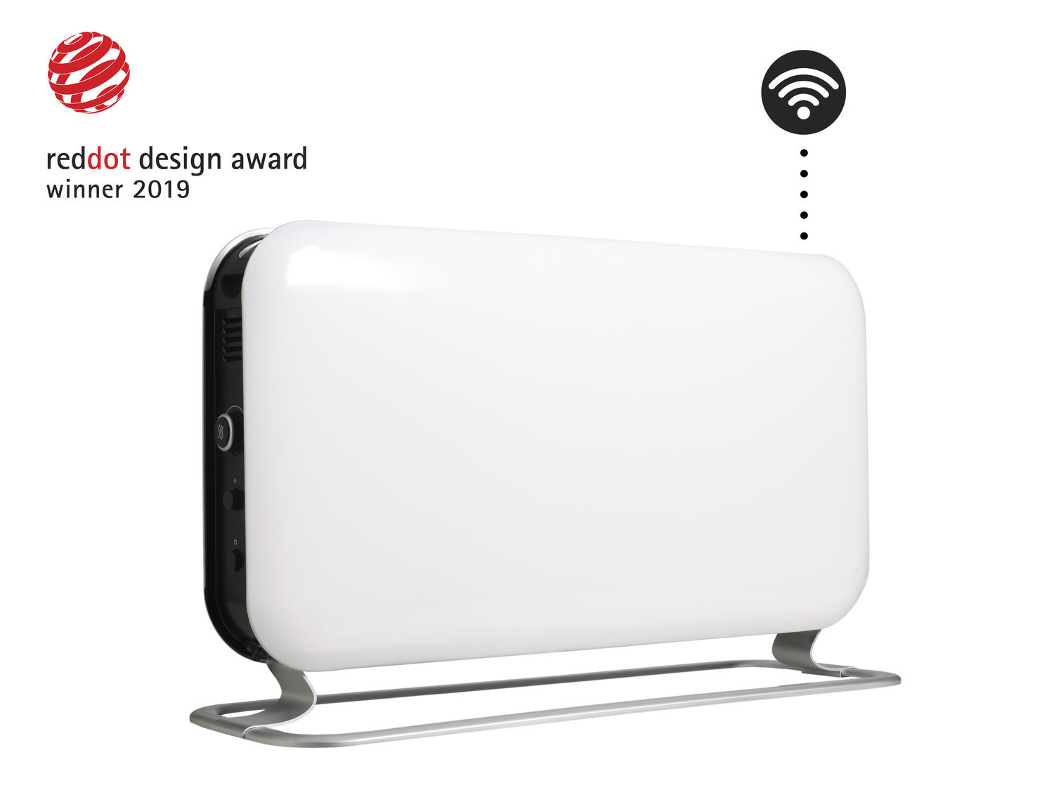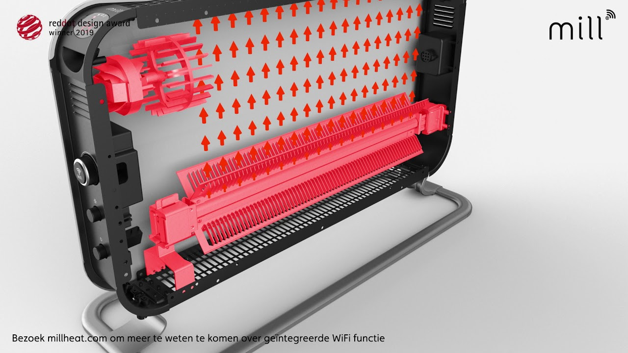 Mill SG1200WIFI sildītājam ir tādas pašas skaistas noapaļotas malas un nedaudz izliekta priekšpuse kā Mill Steel. Mēs ļoti vēlējāmies, lai produkts būtu ar eleganci, tāpēc mēs tam vidusdaļa ir melnā krāsā. Diskrētā pēdu forma un leņķis liek sildītājam lidināties virs grīdas.