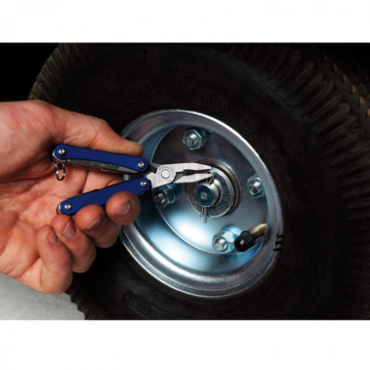 Rīks satur 9 instrumentus: Adatas knaibles, Regulāras knaibles, Vadu griezējs, 420HC nazis, Šķeres, Plakans/Phillips skrūvgriezis, Pudeļu attaisāmais, Koka/metāla vīle, Vidējs skrūvgriezis.