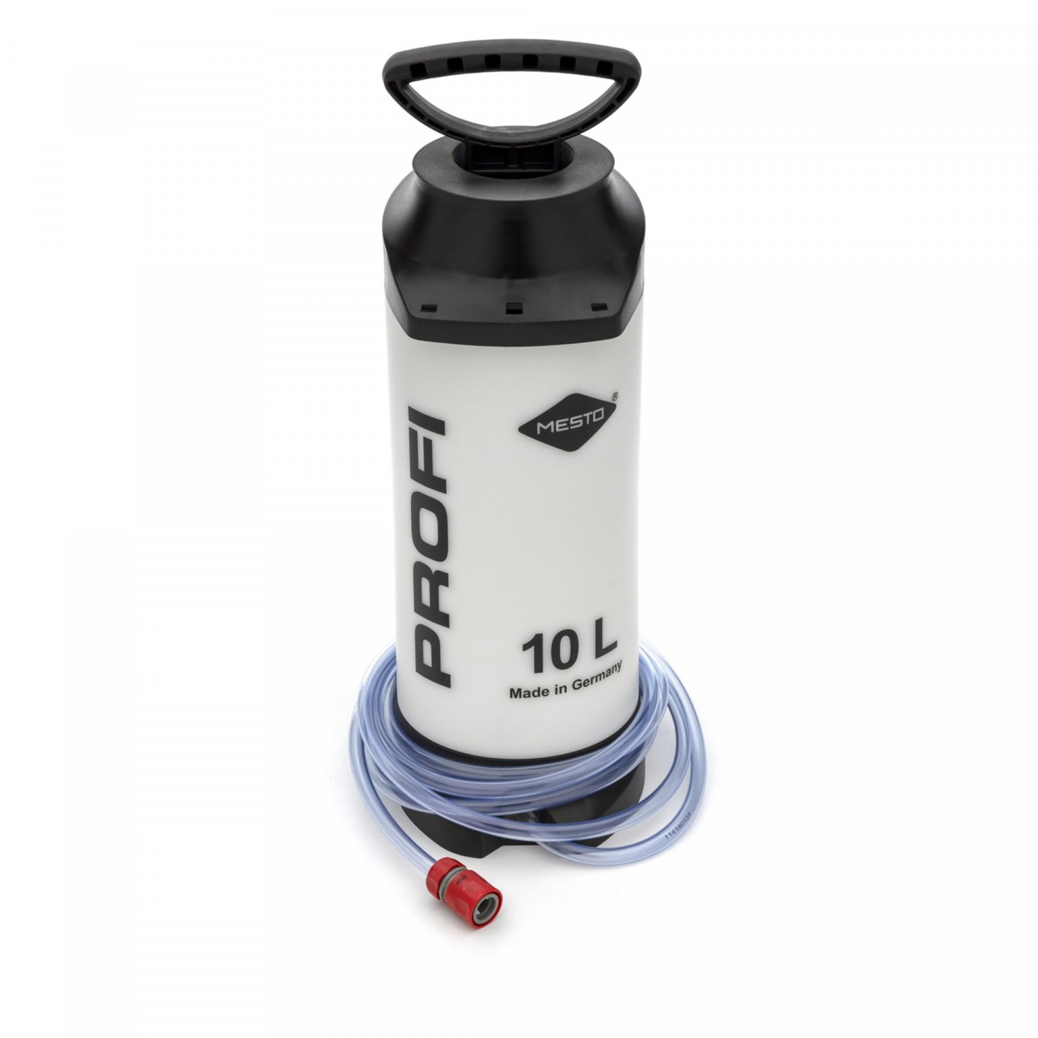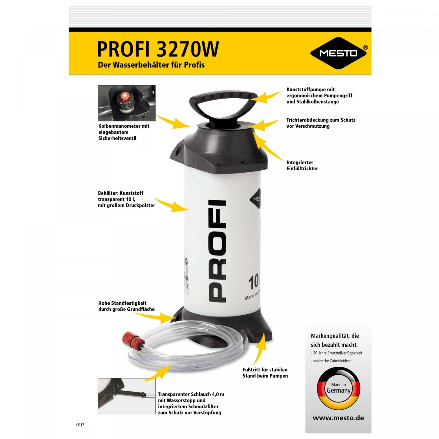 10 litru spiediena ūdens tvertne ir ideāls pavadonis mobilā ūdens apgādei būvlaukumā. Tas piedāvā daudz komforta, piemēram, 400 cm garu caurspīdīgu šļūteni ar integrētu filtru un ūdens aizturi.