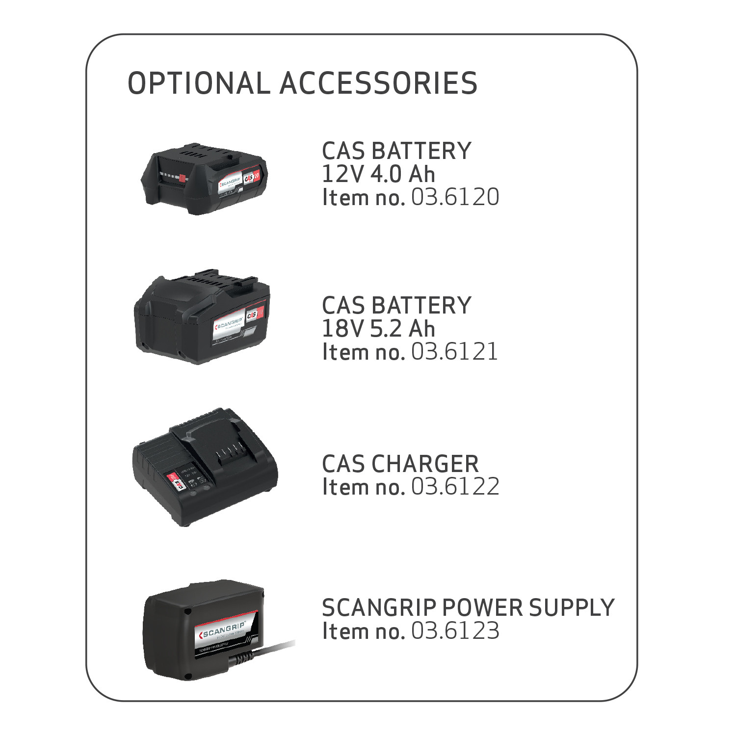 • Saderīgs ar visiem 12V-18V METABO / CAS akumulatoriem.