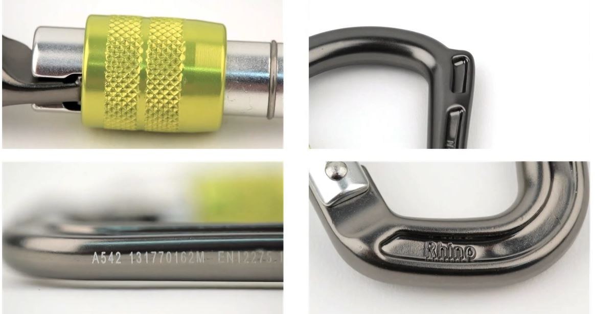 Izteikts rags un plakana pamatne veicina optimālu iekraušanu. Rhino mugurkaula augšdaļa neļauj bremžu palīglīdzekļiem un virvju vadības ierīcēm griezties ap mugurkaulu un šķērsslogot karabīni. Rhino plakanā pamatne palīdz tai sēdēt belay cilpā un darbojas kopā ar ragu, lai palīdzētu Rhino pareizi orientēties.