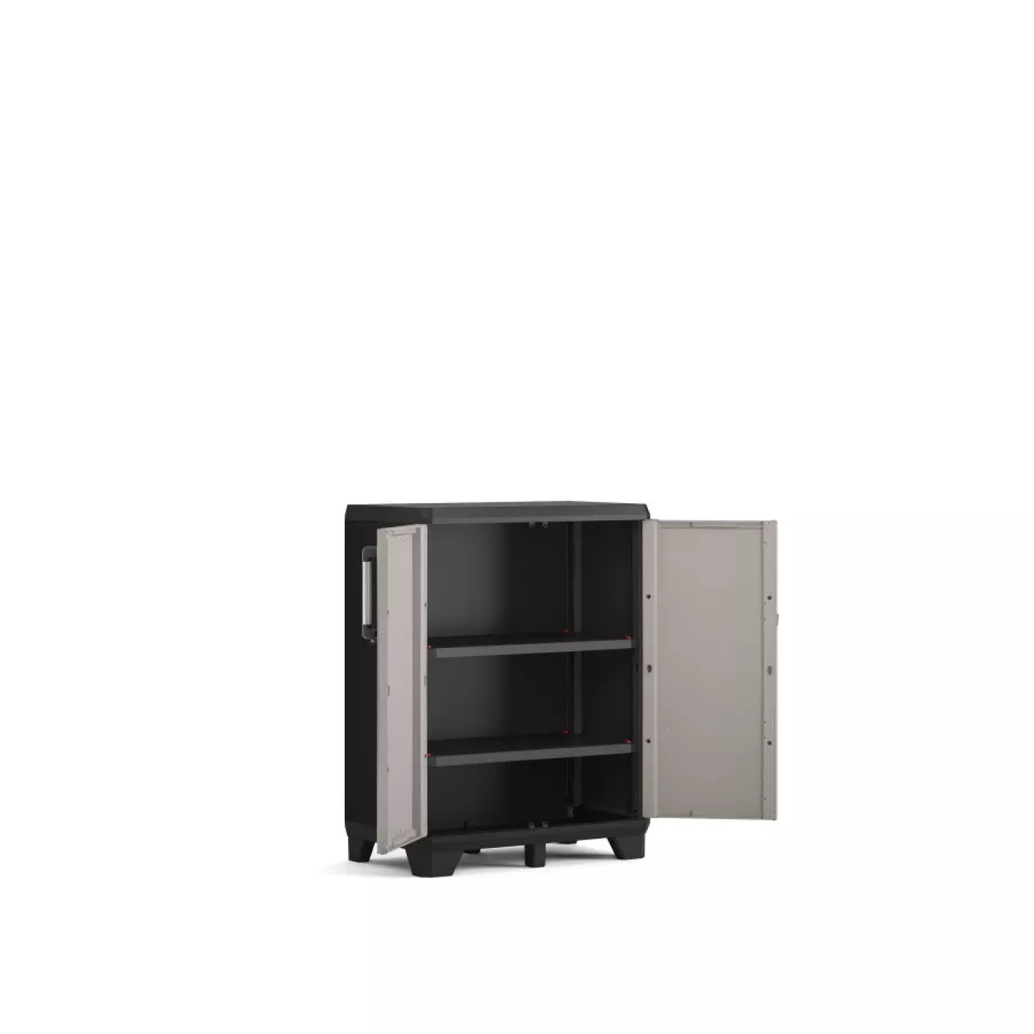Skapis Pro Base Cabinet 68x39x90cm pelēks/melns ir ideāls risinājums darbarīku organizēšanai un glabāšanai šķūnī. Šis KETER skapītis ar modernu dizainu lieliski iekļausies jebkurā telpā, tādējādi padarot to par praktisku un stilīgu izvēli. Kompaktais izmērs ļauj to novietot pat nelielās telpās.