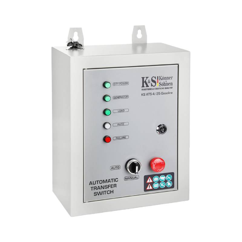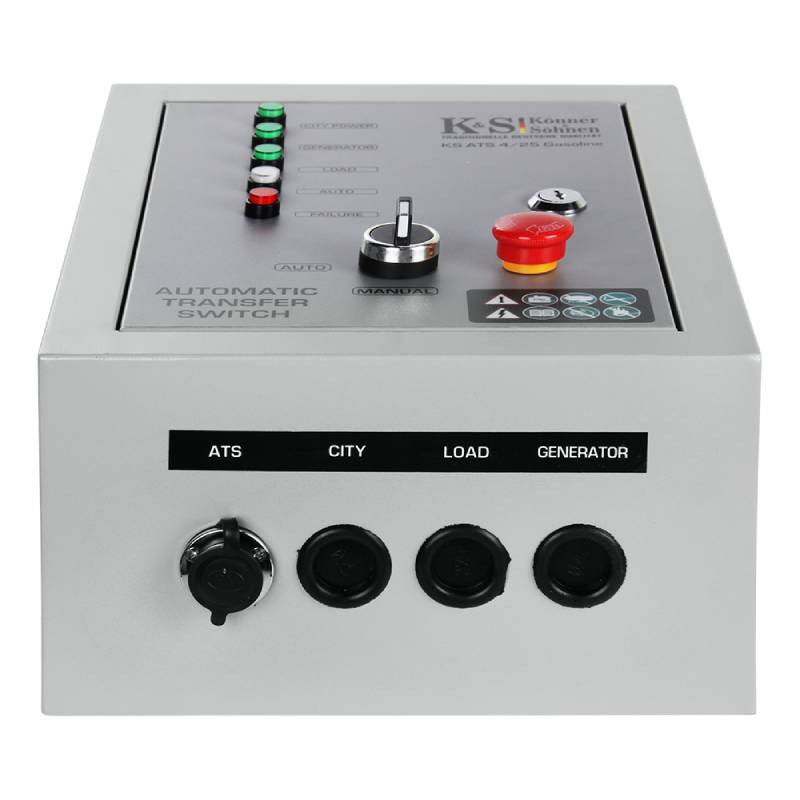 KS ATS 4/25HD ATS iekārta ir saderīga ar visiem Könner & Söhnen benzīna invertera tipa ģeneratoriem ar modeļos redzamo saīsinājumu “ATSR”.