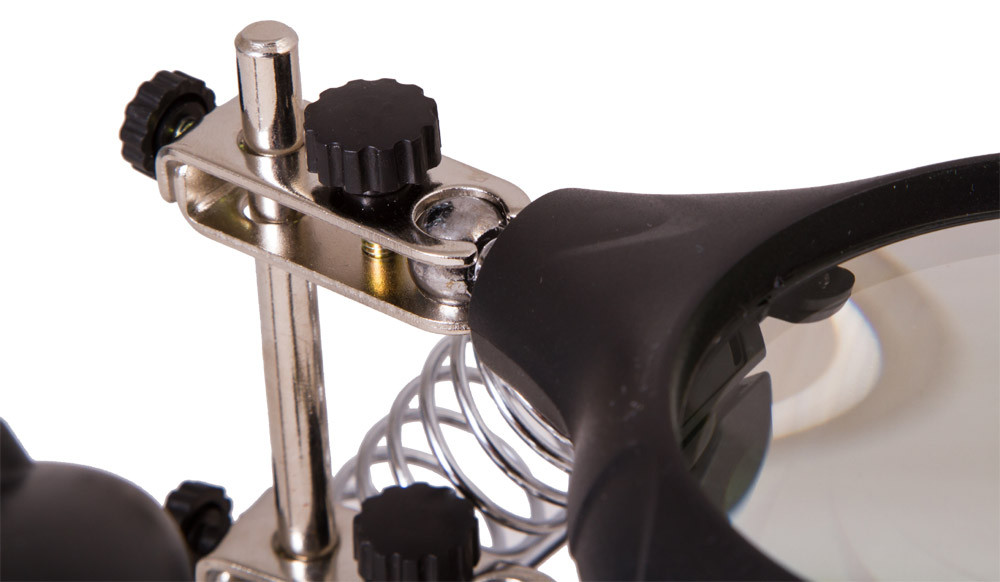Lēcas atrodas uz vertikāla statīva, un jūs varat tās pārvietot pa statīvu tuvāk pētāmajam objektam vai tālāk no tā. Iebūvētais apgaismojums sastāv no piecām spilgtām gaismas diodēm un vienmērīgi izkliedē darba zonu. To darbina elektrības vads (iekļauts komplektā) vai trīs AA baterijas (nav iekļautas komplektā).