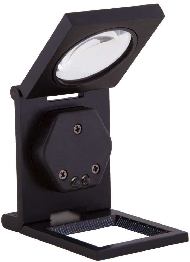 Pamata apakšējā daļa ir rāmis ar mērīšanas skalu collās un centimetros. Divas gaismas diodes ir novietotas virs rāmja, un to gaisma ir vērsta tieši uz laukumu rāmja iekšpusē zem lēcas. Gaismas intensitāte ir regulējama. Gaismas diodes darbina divas CR927 baterijas. Lēca ir izgatavota no optiskā stikla un nodrošina 6x palielinājumu. Sīkas detaļas ir skaidri redzamas, bet optiskās novirzes tiek samazinātas līdz minimumam.