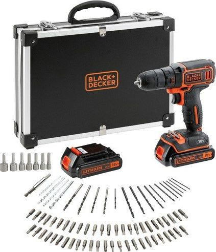 Komplektā ietilpst bezvadu urbjmašīna, divi 10,8 V litija akumulatori, metāla koferis, kā arī plašs instrumentu komplekts ar 100 piederumiem, kurā ir 20 urbji, 20 dībeļi un 60 skrūvgrieži.