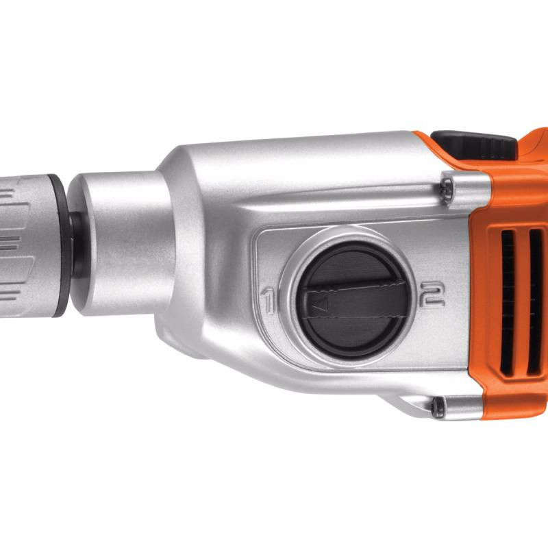 BLACK DECKER KR911K ir divu ātrumu triecienurbjmašīna, kuru raksturo tās 910 W jauda. Augstākai precizitātei un rezultātam palīdzēs ergonomiski pielāgotais otrais rokturis, ko var piestiprināt urbjmašīnas priekšējā daļā, tādējādi padarot to vēl stabilāku. It īpaši intensīvākas urbšanas darbos - mūrī vai betonā, bet jo īpaši āmura / kalta funkcijas izpildes laikā, kad ir jānojauc, piemēram, starpsiena vai jāatbrīvo sienas un grīdas no betonētām flīzēm.