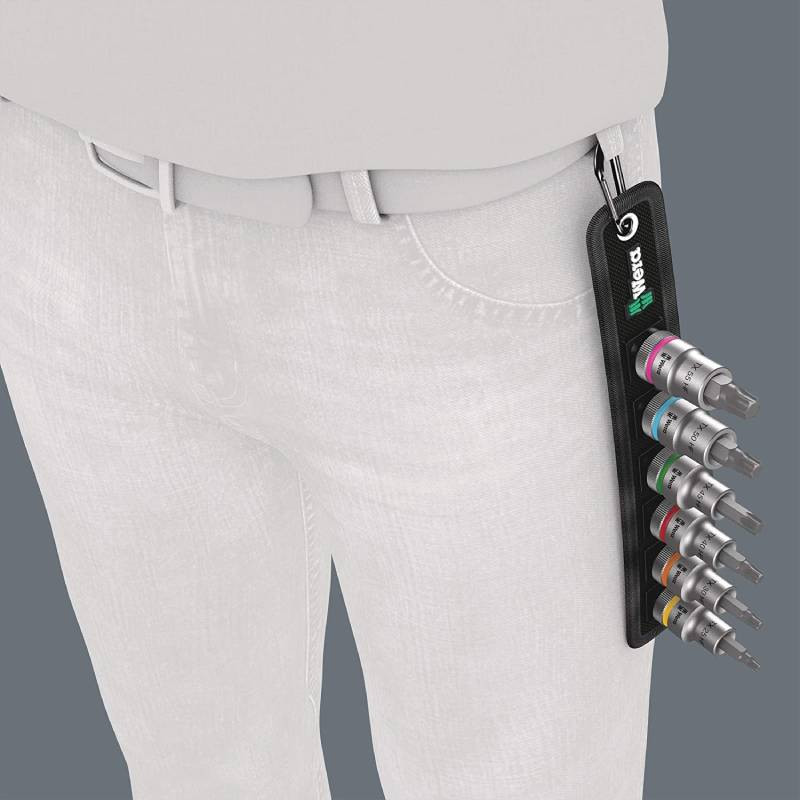 WERA Belt C 3 Zyklop ir lielisks sešu muciņu komplekts, kas piestiprināts uz īpaši vieglas tekstila jostas. To gludi rotējošais mehānisms nodrošina drošu fiksāciju un vieglu uzgriežņa noņemšanu no jostas. Turklāt jostas galā ir iestrādāts karabīnes veida āķis, kas ļauj piespraust to pie bikšu jostas, lai uzgaļi būtu tieši pa rokai un nekavētu darba veikšanu.