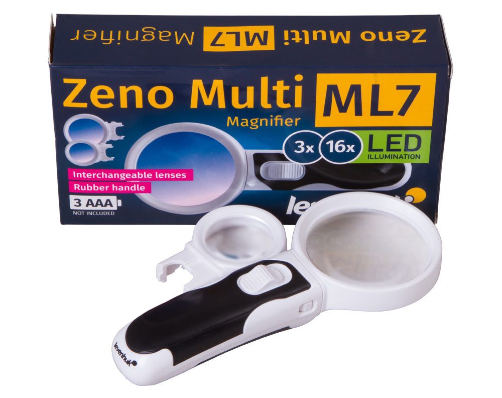 Levenhuk Zeno Multi ir kompakts un viegls palielināmais stikls, kas ir ideāli piemērots mazu objektu pētīšanai un mazu fontu tekstu lasīšanai. Palielināmā stikla rokturī ir uzstādīti LED apgaismojumi. Izvēlieties piemērotu apgaismojuma režīmu ar pogu uz korpusa.