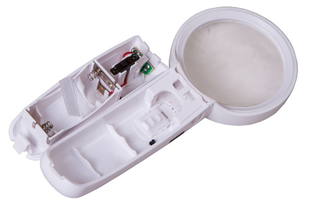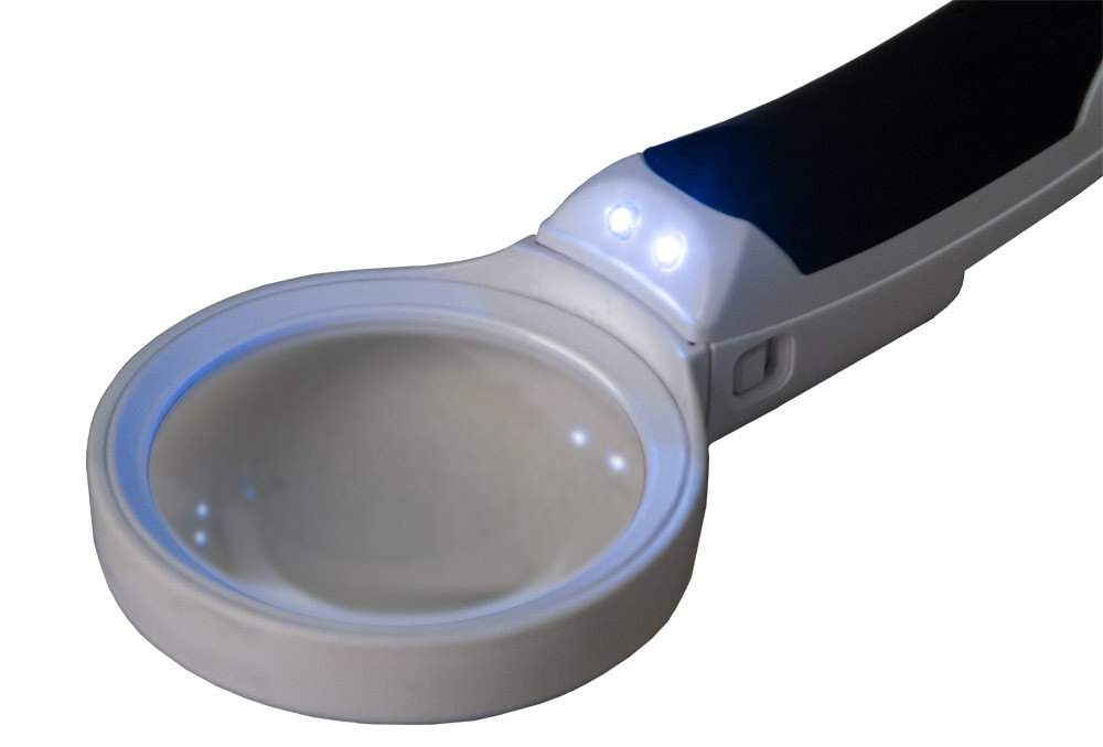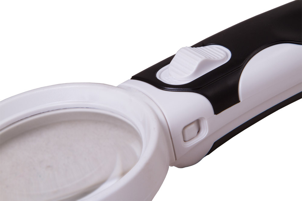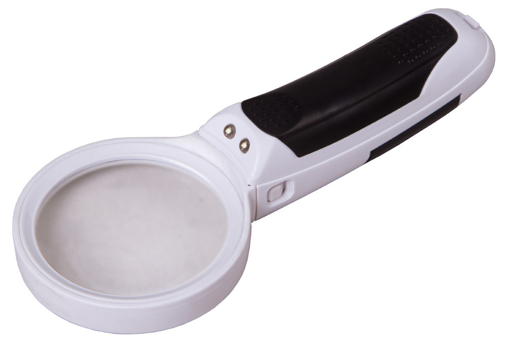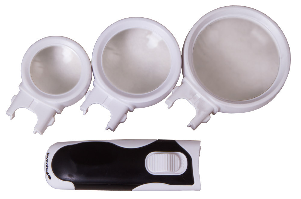 Modelis ir ar trim dažādu palielinājuma un diametra lēcām, ko viegli var piestiprināt pie ergonomiskā roktura ar vienkāršu sprādzi. Izmantojiet lielu palielinājumu, lai pētītu sīkus objektus, vai mazu palielinājumu lasīšanai. LED apgaismojums ir iestrādāts rokturī, tas vienmērīgi izgaismo visu darba virsmu zem lēcas.