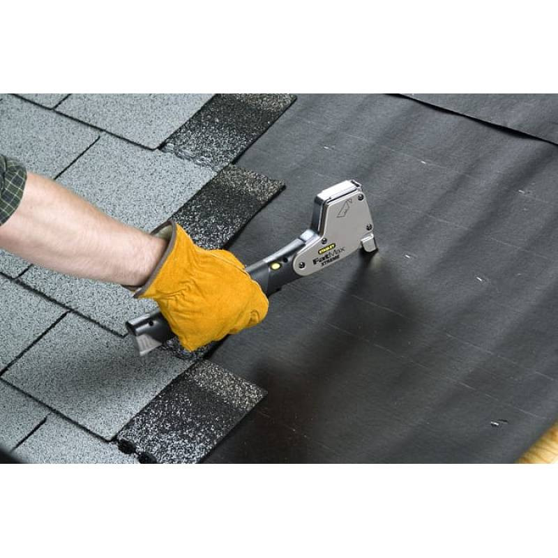 STANLEY 0-PHT350 naglu pistole ir ērts un daudzpusīgs darba rīks, kas paredzēts īpaši darbam ar jumta segumiem, jumtu izolācijai un apakšklājumiem, tāpat arī filcēšanai, utml. Šajā darba rīkā ietvertas lieljaudas G tipa skavas izmēros attiecīgi 8 mm, 10 mm vai 12 mm. Tam ir trīs dažāda izmēra naža asmeņi. Starp citu, kā apgalvo ražotājs, šis ir pirmais šāda tipa instrumets, kas apvieno kā skavotāju, tā naža funkcijas. Instruments sver nieka 1,34 kg, līdz ar to tas ir ideāli piemērots ilgstošam un nepārtrauktam darbam - rokas nebūs nogurušas nemaz. Mīksts rokturis ērtai lietošanai un uzticamai instrumenta vadībai, tāpat ir arī asmens nomaiņas poga.