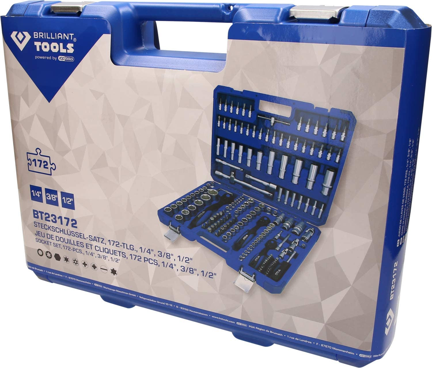 Instrumentu komplekts tiek piegādāts izturīgā plastmasas futrālī ar metāla slēdzenēm.